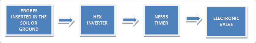 HEX反相器将触发NE555守时器,该NE555守时器将触发另一个毗邻到第一个NE555输出的NE555。现正在,第二个NE555被装备为星形众谐振荡器,它将助助翻开电动阀门,结果,它将容许水流向泥土。