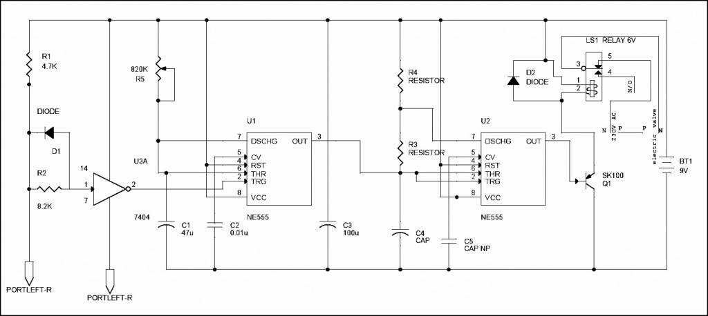 第二个NE555守时器的输出将翻开晶体管SK100,它将驱动继电器。继电器毗邻到电气值的输入端,其输出值通过管道送给植物园。